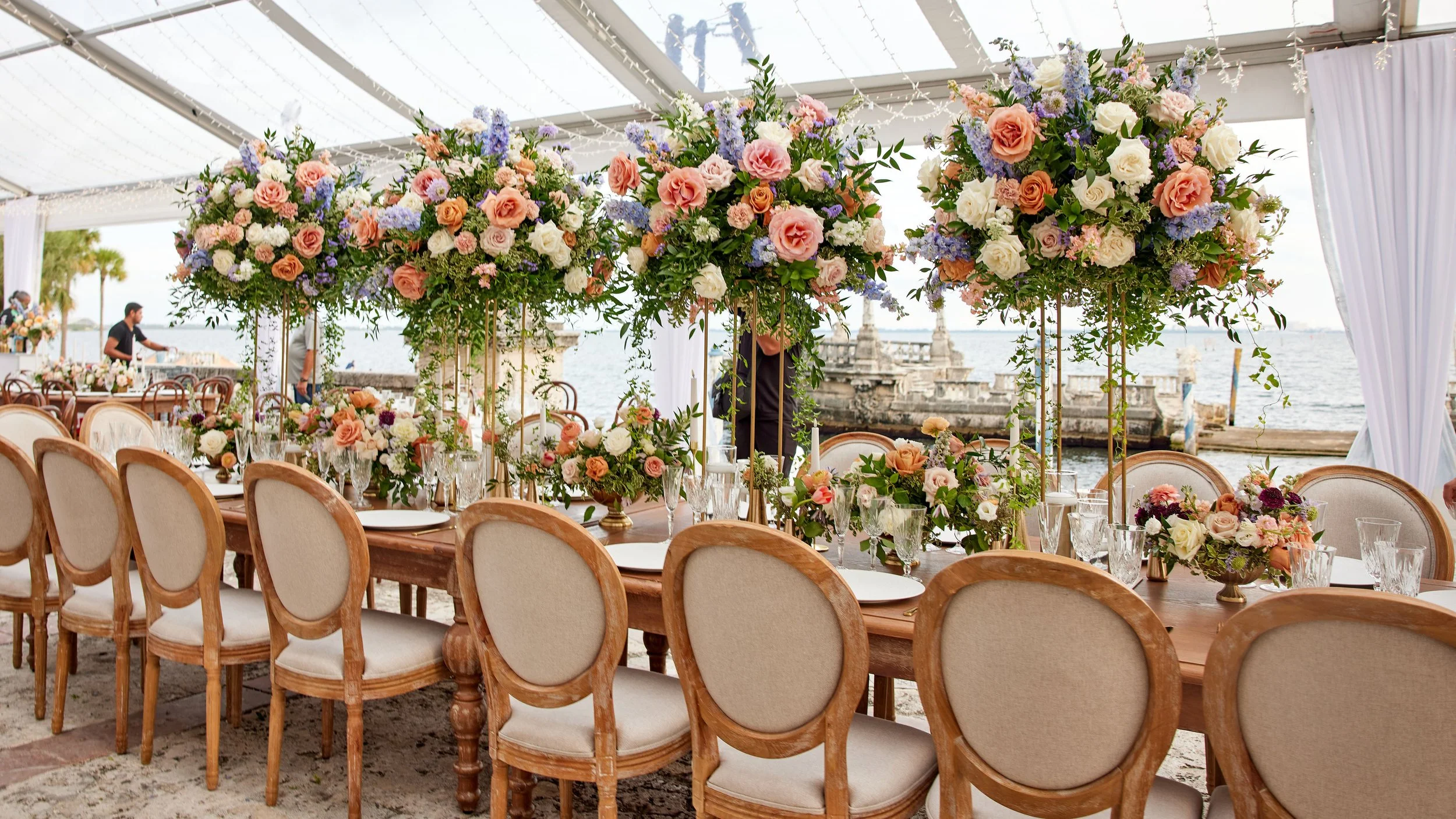 We offer a wide range of event rentals in Miami, including tents, chairs, tables, cocktail tables, charger plates, and pipe & drape. Whether you're planning a wedding, corporate event, or private party, we provide everything you need to create a seamless setup.